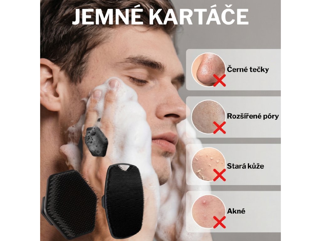 Jemné silikonové štětiny pomáhají odstranit nečistoty, maz a odumřelé kožní buňky z pokožky.